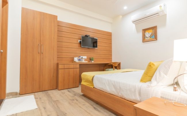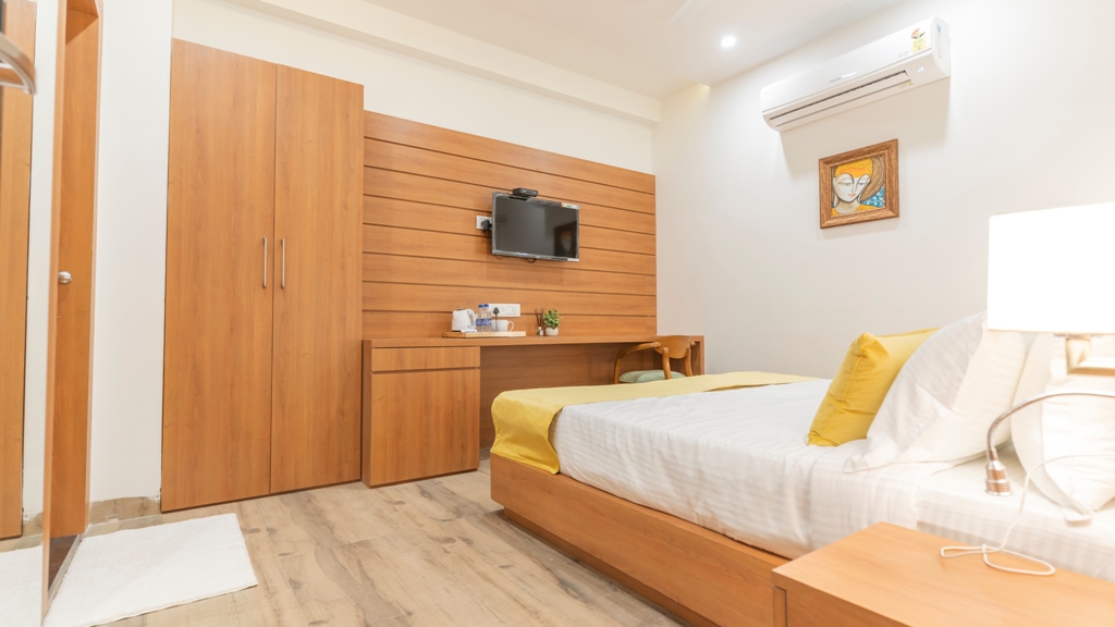 These fabulously furnished luxury super deluxe hotel rooms at The Udai Elite offer every convenience you can think of. Right from a fully furnished room and laundry service to 24-hour room service – your every need for a comfortable hotel stay in Udaipur is fulfilled at our hotel. Filled with numerous well-thought amenities at hand, our super deluxe rooms not only give our guests a greater sense of comfort and independence but also elevate their sense of privacy a hallmark of our service that never fails to garner compliments. And that’s not all, you are also provided with air-conditioning and high-speed internet access. Enjoy your stay as we continue to pamper you!
